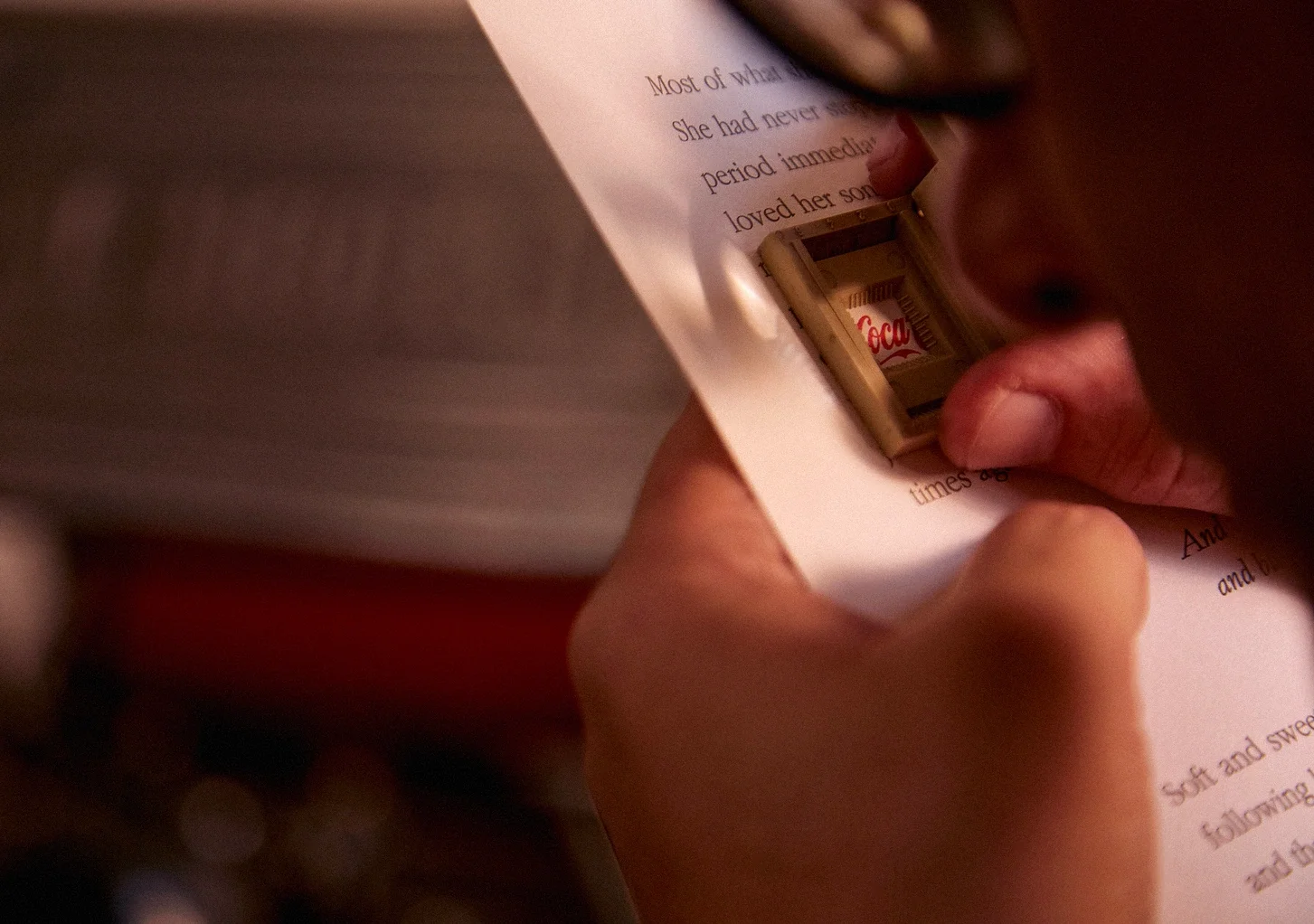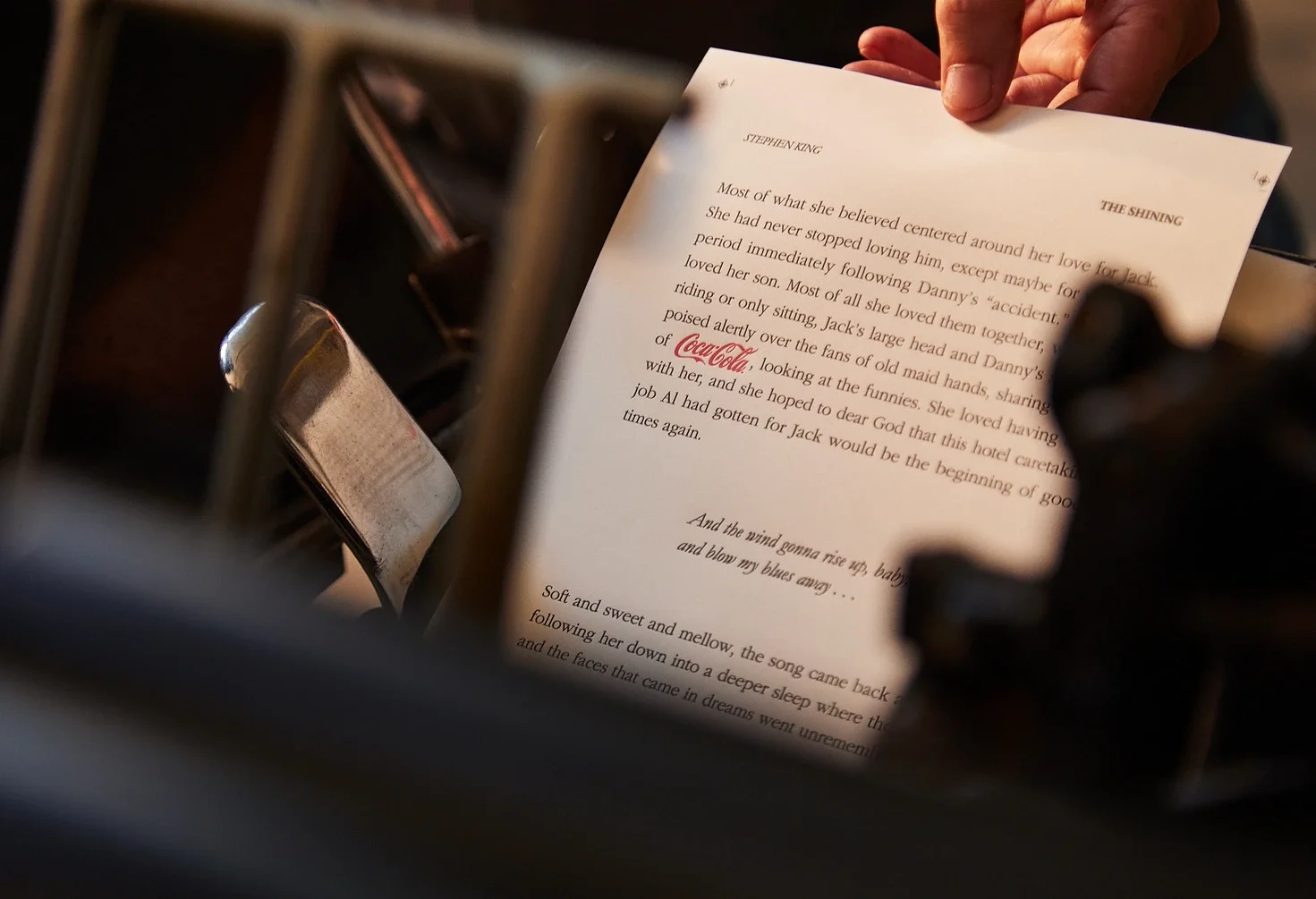 We reimagined these literary moments by replacing each mention of the brand with Coca-Cola’s iconic red logotype, seamlessly woven into the original typography and textures of first editions.